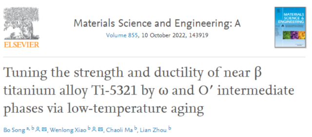 2022年9月2日,9428cn太阳集团古天乐宋博老师在 Materials Science and Engineering: A 发表了题为  Tuning the strength and ductility of near β titanium alloy Ti-5321 by ω and O′ intermediate phases via low-temperature aging 的研究论文,研究了亚稳相ω和O′析出对高强钛合金Ti-5321的组织演变及力学性能的影响,揭示了合金强度-塑性同时提高的内在机理。