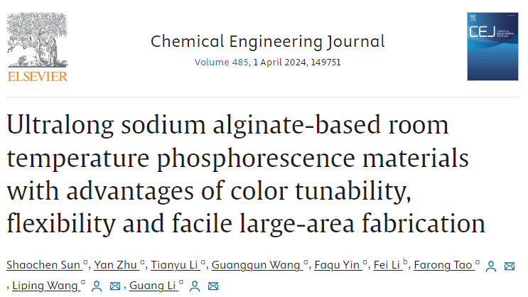 Chemical Engineering Journal | 公司李光课题组在发光颜色可调柔性室温磷光材料研究方面取得进展
