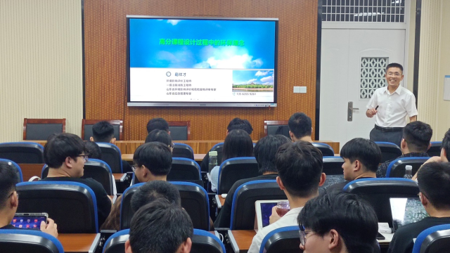 葛祥才副教授首先从安全生产与环境保护的角度,讲解绿色发展,人与自然和谐共生、企业环保管理事项等内容,接着从高分子专家角度分析和讲授高分子课程设计过程如何体现环保理念,如何做到低碳环保。
