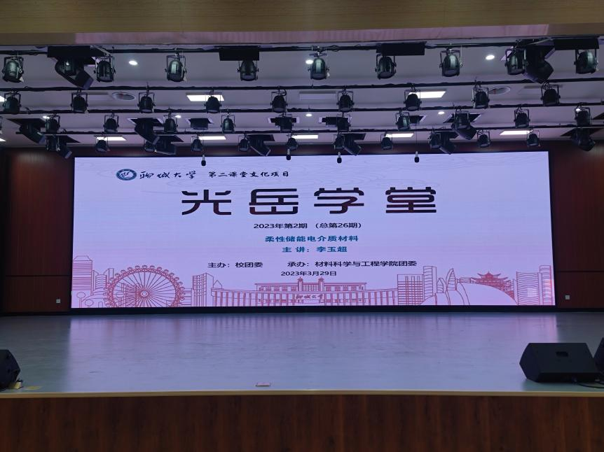 为使同学们了解新型材料发展状况,丰富知识储备,提高对新材料的兴趣,2023年3月29日,由校团委主办、承办的“光岳学堂”活动在青年之家三楼报告厅举行。本次讲座特邀李玉超教授担任主讲。