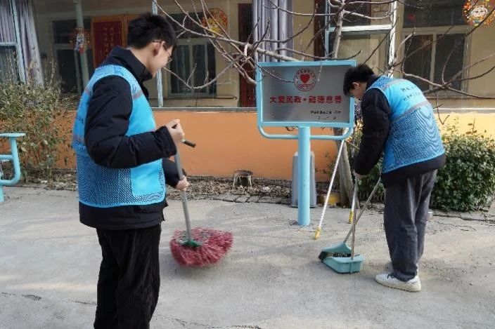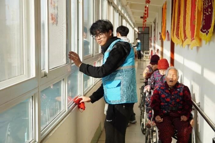 随后在古楼颐养中心,志愿服务队队员们根据各自分配的任务在颐养中心内打扫卫生。队员们分工合作,有的擦窗户、有的拖地、有的清理垃圾,仔细地清扫每一个角落,不放过任何一个污垢和灰尘。在队员们的努力下,颐养中心变得更加整洁明亮,为老人们整理出更加舒适和宜人生活环境。在打扫卫生的过程中,志愿者们还与老人们交流互动,了解他们的生活和健康状况,为老人们送去温暖和关爱,他们用自己的实际行动传递着尊老、敬老、爱老的精神,让老人们感受到了社会的温暖和关怀。