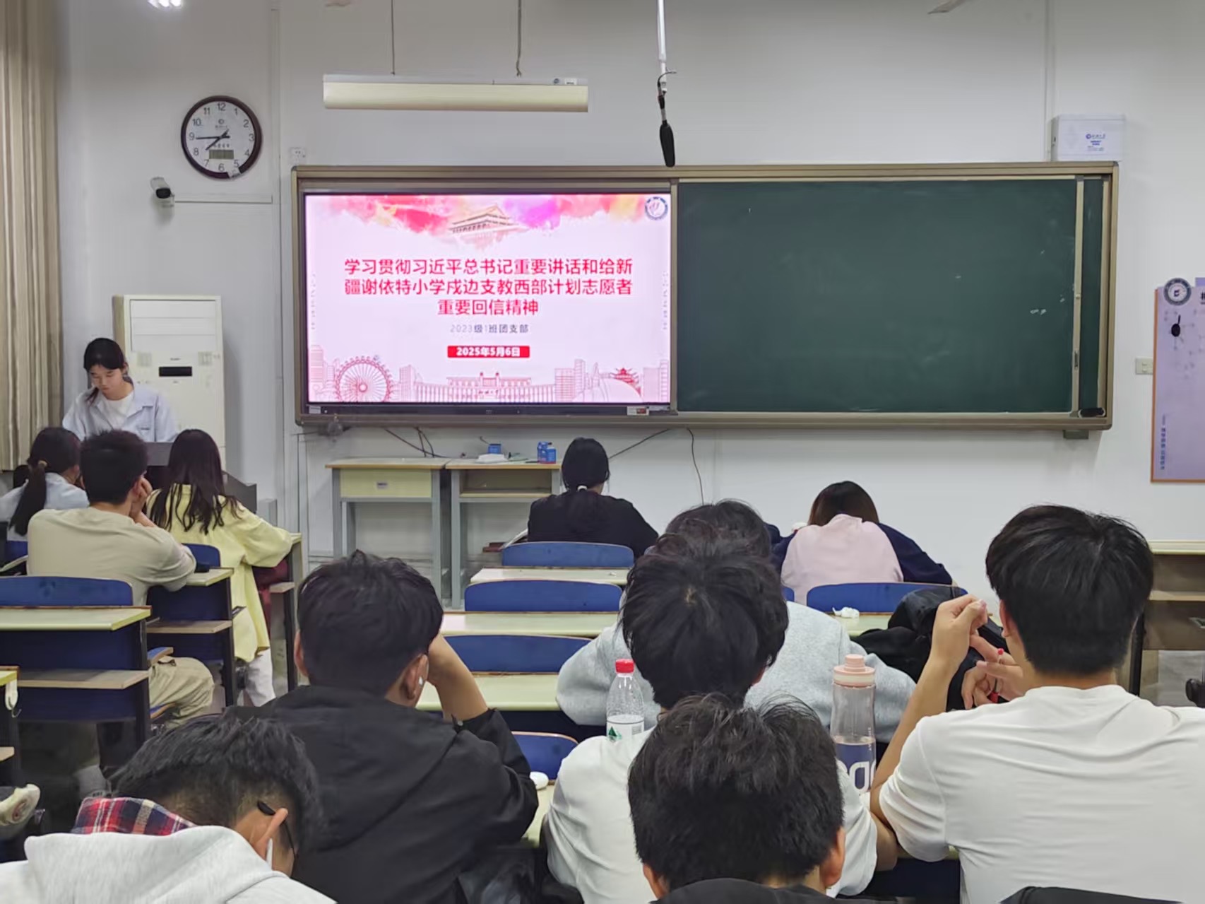 为深入学习贯彻习近平总书记重要讲话及给新疆谢依特小学戍边支教西部计划志愿者重要回信精神,引导青年学子厚植家国情怀、激发使命担当,2025年5月6日,9428cn太阳集团古天乐团委组织全体团支书和员工组织骨干开展专题学习会,并动员各团支部广泛开展学习活动,在全院青年中掀起学习热潮。