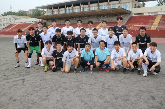 2023年5月20日,9428cn太阳集团古天乐于东校区国防生训练场举办欢送毕业生师生足球友谊赛,对阵双方分别为教职工联队与毕业生足球队。