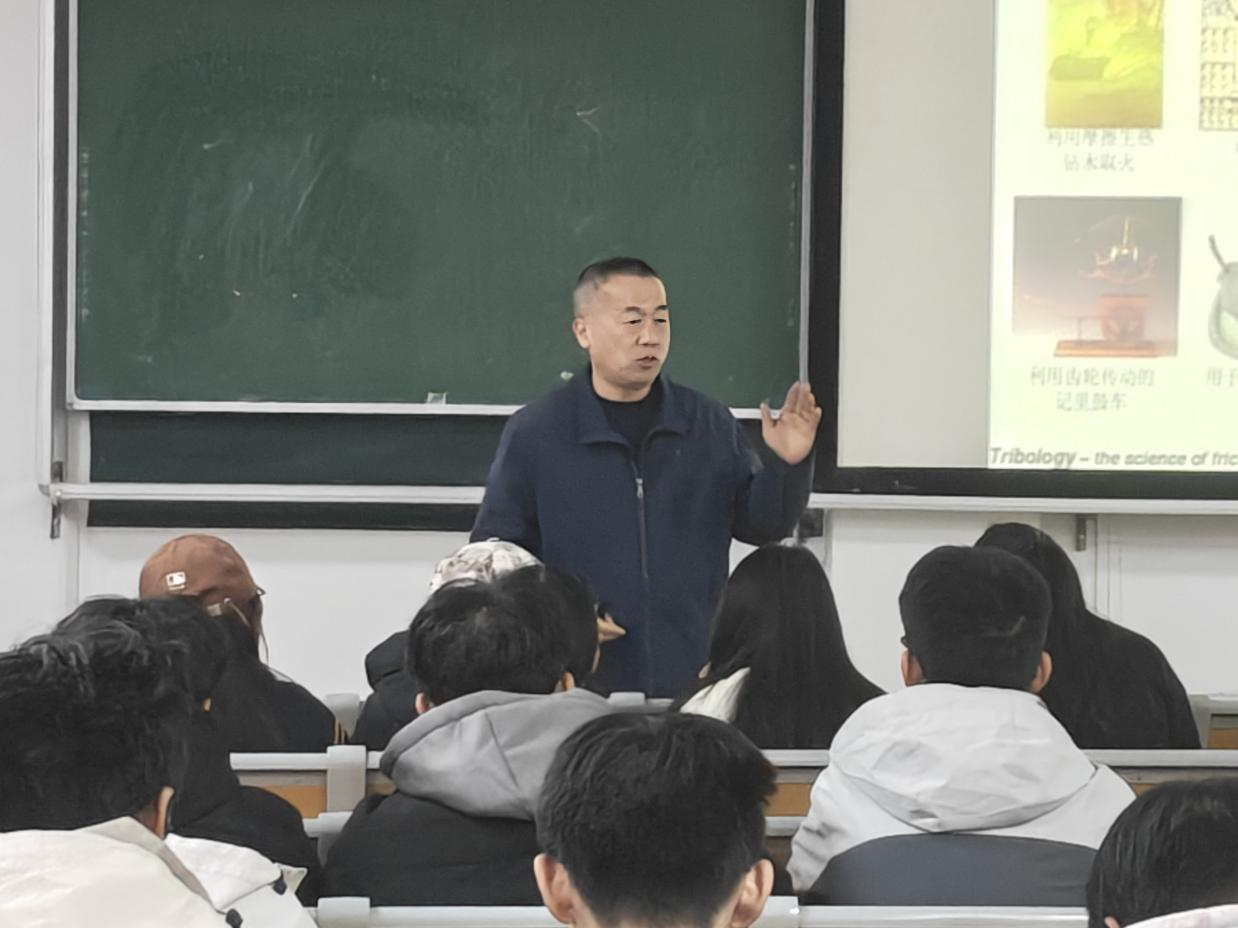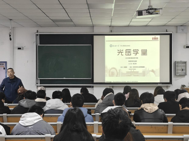 贾正锋教授以“摩擦学概论”为题,系统梳理了摩擦学的发展脉络——从早期的润滑理论演进至现代多维度摩擦行为研究,并结合航空航天、高端装备等领域的实际需求,深入剖析了摩擦、磨损与润滑三大核心问题的关键技术。在“前沿技术模块”部分,贾教授重点介绍了智能润滑材料、仿生减摩结构及极端工况摩擦调控等最新研究方向。此外,他还结合高铁轴承、精密机床等工业实例,详细阐述了摩擦学技术在提升装备可靠性与延长服役寿命中的积极作用,进一步强调了摩擦学对推动高端制造业升级的重要支撑价值。