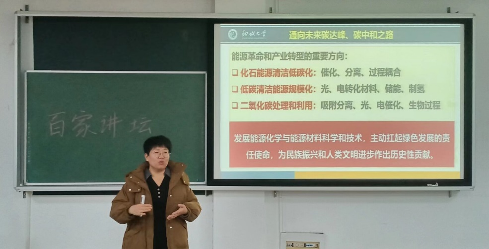 尹杰老师从碳达峰、碳中和开始谈起,依次为同学们讲解了我国实现碳达峰、碳中和的目的及现存问题,并引出了电解水制氢的研究方向。此外,尹杰老师以电解水反应机理为过渡,向同学们展示了工业上氢能经济的完整产业链,进一步拓宽了同学们的视野。同学们纷纷表示,尹杰老师的讲解生动形象,能够让同学们直观认识环保高效电解水的工业化流程,使得大家收获颇丰。