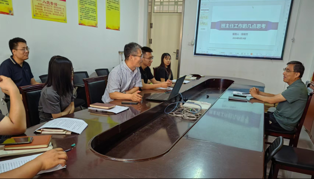 倪俊杰老师作为一名担任过18年班主任的老师,给大家分享了《班主任工作的几点思考》,他指出班主任老师是一名思考者、管理者和服务者,强调了班主任对员工做思想工作的重要性。接着倪老师分享了做班主任以来总结的6条工作技巧与策略,同时向2024级新生班主任们送上了诚挚的祝愿,希望他们能在班主任工作中有所收获,不断成长和进步。