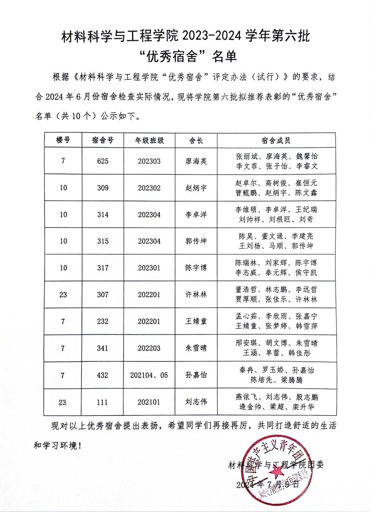 通过第六批优秀宿舍的评选活动,将有利于同学们养成自律的好习惯,提高同学们团队协作意识,共同推动宿舍安全文明建设。
