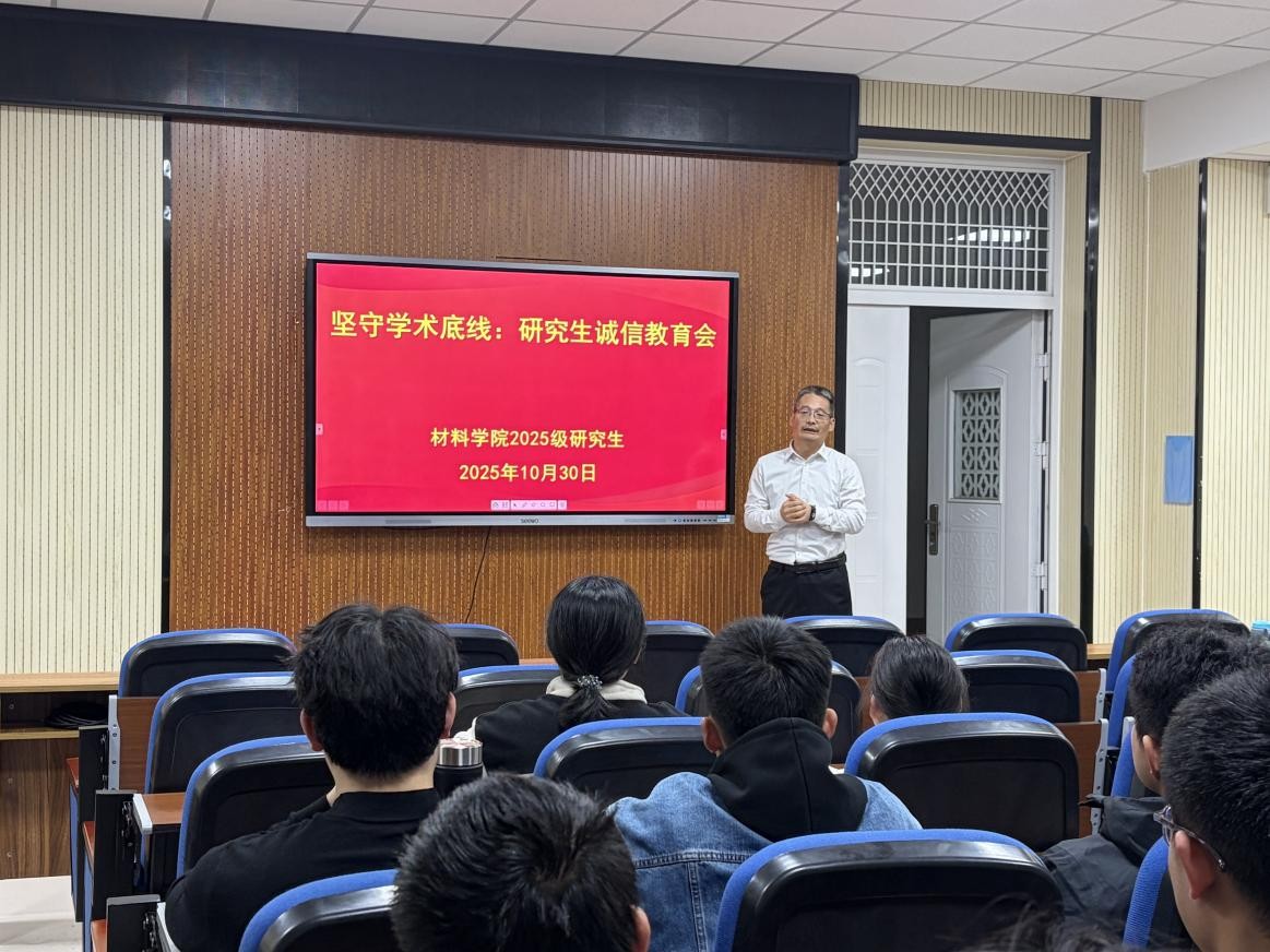 为进一步强化研究生的学术规范意识,营造风清气正的学术生态,2025年10月30日,在五号实验楼202组织开展坚守学术底线:研究生诚信教育会活动,此次会议邀请倪俊杰老师担任主讲嘉宾,公司全体2025级研究生参会。
