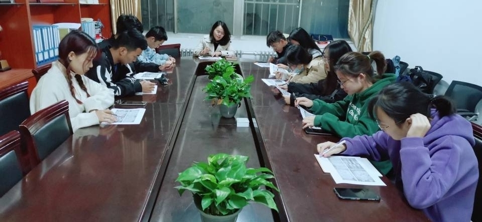 为了让老员工学会缓解心理压力,提高心理承受能力,合理安排时间,培养兴趣爱好,陶冶情操,同时可以帮助需要帮助的同学,于10月26日晚7点在团委办公室组织了朋辈心理辅导活动,杨淑茜老师与各班心理委员参加本次活动。
