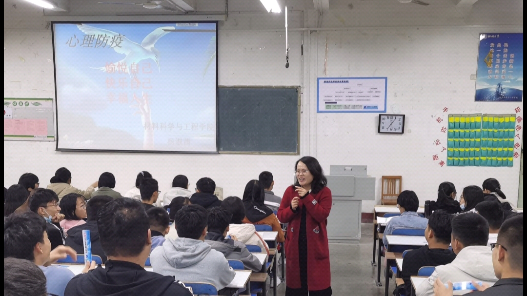 刚刚步入大学,新的生活,新的开始,新的未知,面对这些,我们难免有点无所适从,这可能给我们带来不少心理问题。因而,杨淑倩老师推出了《心理防疫》,线下讲座,并为同学们指明方向,切实解决同学们可能存在的的心理问题,帮助我们愉悦自己,快乐自己,帮助我们塑造自己的快乐人生。