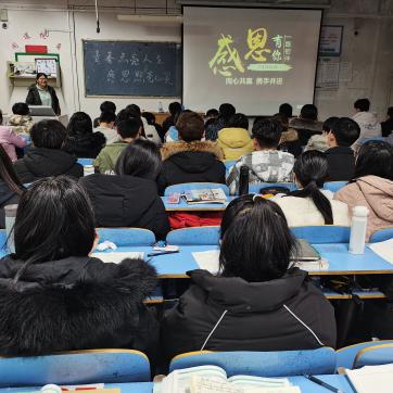 为能使同学们更加深刻领悟到青春感恩的意义,团委杨淑茜老师给各班负责人做开展此次班会相关事项的指导,确保每位班级负责人能深刻领悟到此次活动的意义,引起大家的重视。后再由他们去各班展开此次班会。各班负责人以真实而感人的致辞开场,点明班会“青春感恩”的主题,伴随着一首优美的旋律,心理委员用简洁精炼的语言将一个个真实感人的事例呈现给每位同学,让同学们懂我们正值青春大好年华要心怀感恩。
