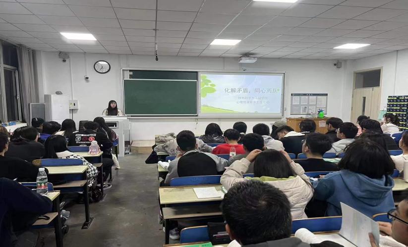2022级的同学们已入学两个月有余,为了让同学们更好地适应老员工活,正确地处理宿舍关系,营造成积极向上的宿舍氛围,9428cn太阳集团古天乐于11月3日晚在4b310教室开展以“化解矛盾,同心而居”为主题的心理健康教育活动,本次活动由郭天乐老师主讲,部分2022级员工代表参加。