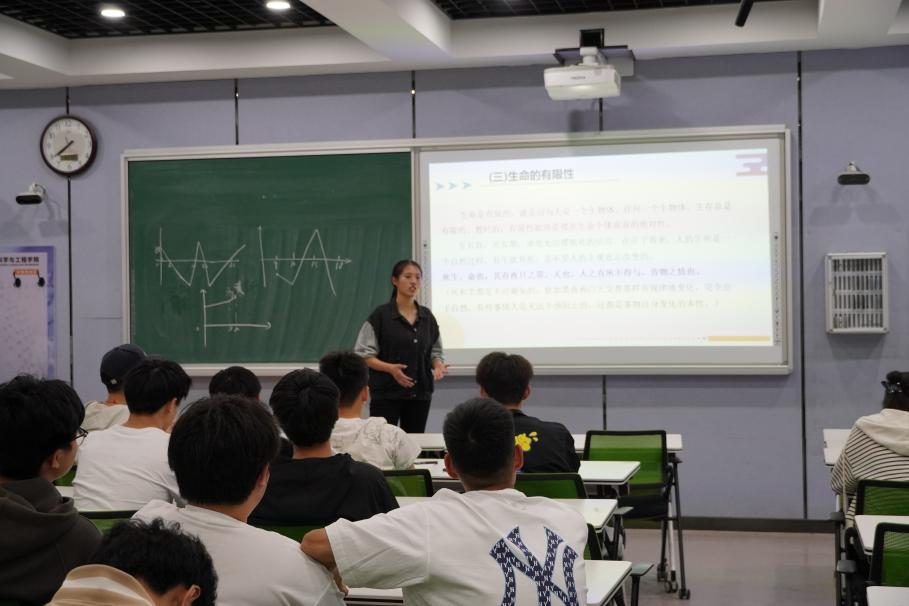 首先吕欢欢学姐让同学们说了自己对生命的见解活跃现场氛围。随后她指出:生命教育就是在物质性生命的前提下,在个体生命的基础上,通过有目的、有计划的教育活动,对个体生命从出生到死亡的整个过程,进行完整性、人文性的生命意识培养,引导员工认识生命的意义。紧接着吕欢欢学姐让同学绘制生命线,并现场挑选几位同学分享自己的见解。最后吕欢欢学姐向同学们解释了生命的意义,鼓励大家去实现自己的生命价值。