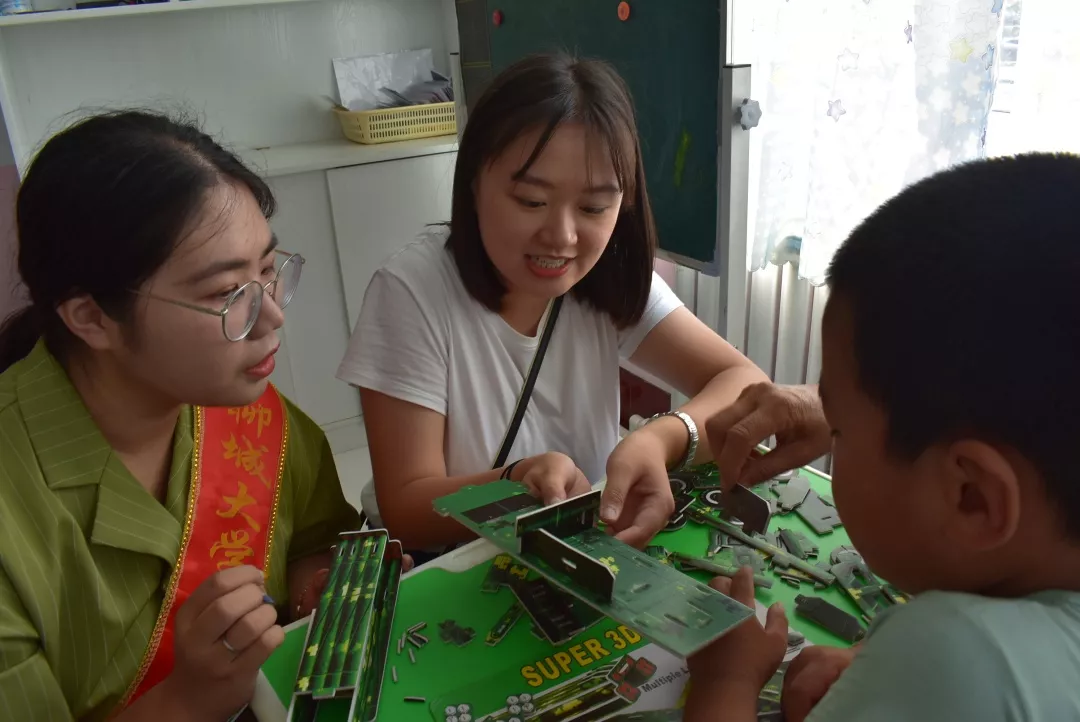 烈日炎炎,志愿者们拎着带给孩子们的礼物来到了天使之翼儿童康复训练中心。由于自闭症的特殊性,孩子们对志愿者们有些陌生,甚至有所排斥。但同学们热情不减,积极地和孩子们打招呼并尝试与他们交流。为了锻炼孩子们的自理能力,手眼协调以及与人交流合作的能力,志愿者为孩子们带来了拼接模型和涂鸦面具。在志愿者和家长的指导下,孩子们认真地在空白的面具涂上了自己喜爱的颜色,一个个五彩斑斓的面具诞生在孩子们和志愿者的手上,一张张欢乐的笑脸也因此绽放。孩子们还与志愿者们一起细心地配合完成了模型搭建。不安与拘谨逐渐褪去,孩子们与志愿者的心灵慢慢靠近。离别之际,志愿者们给孩子们送上了精心挑选的小礼物。这场关爱自闭症儿童的行动圆满结束。