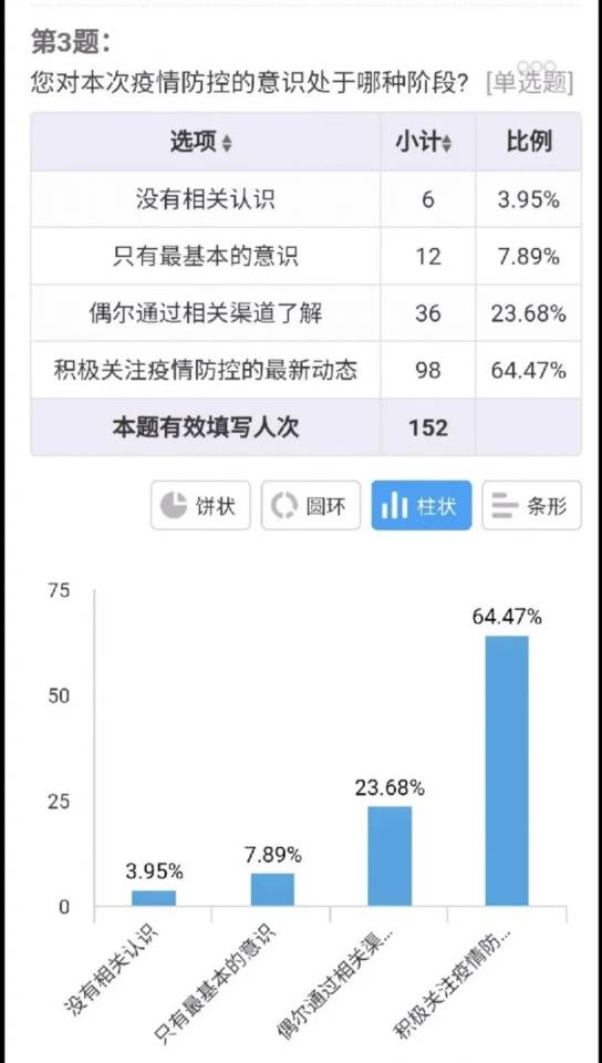 此次活动采取线上问卷、线下采访相结合的方式。为了解疫情对各职业、各阶层人们生活的影响,志愿者们提前拟定调查问卷,以线上问卷的形式在微信、QQ等软件上分发调查问卷。除发放问卷外,志愿者也向受访者询问与疫情形势相关的的生活问题,将疫情调查与生活实际相联系,确保调研的合理性。材料学子虽身处后方,但心在前方,与祖国齐心协力共战疫情。小组成员积极宣传疫情防控知识,提高人们的防控意识,敲警钟,暖人心,与祖国共同打响抗疫战役。