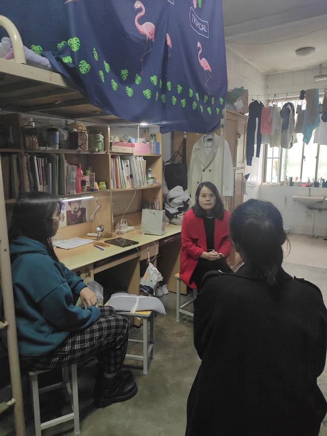 继心理委员为同学们开展心理走访活动后,为更加深入地了解并及时疏导同学们的心理问题,解决同学在老员工活中的种种困惑,关爱贫困生同学的学习生活,杨淑茜老师走访贫困生宿舍,详细地询问了同学们心理上的各种困惑,并做出了悉心回答。
