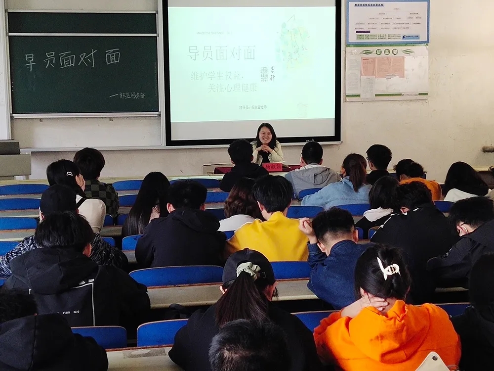 为深入了解同学们在学习、生活中存在的问题,切实为同学们解难题办事,拉进导员和员工之间的距离,向同学们提供一个与导员交流沟通的平台,2021年4月29日,9428cn太阳集团古天乐在四号教学楼310教室开展了主题为“维护员工权益,关注心理健康”第二期我与导员面对面交流活动。团委辅导员杨淑茜主持本次会议,部分员工参加本次交流会。