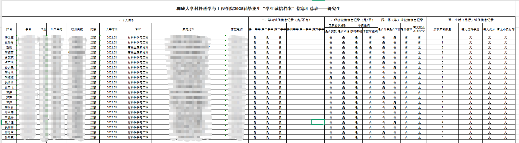 建立2025届毕业生诚信电子档案