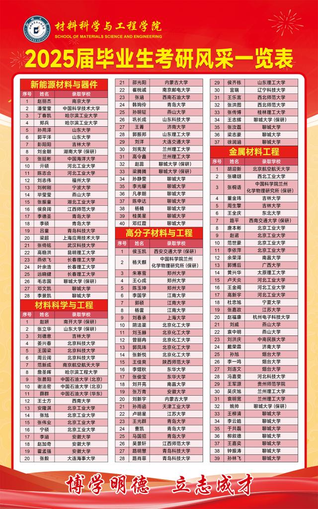 在追逐理想的“研”途上,每个晨读的朝露与夜习的星光都将化作破茧的力量。愿已上岸学子永葆材料人“格物创新”的精神底色,在科研领域开疆拓土;正奋战的同学们当以学长学姐为炬,让“金相”般的青春在淬炼中绽放璀璨光芒!